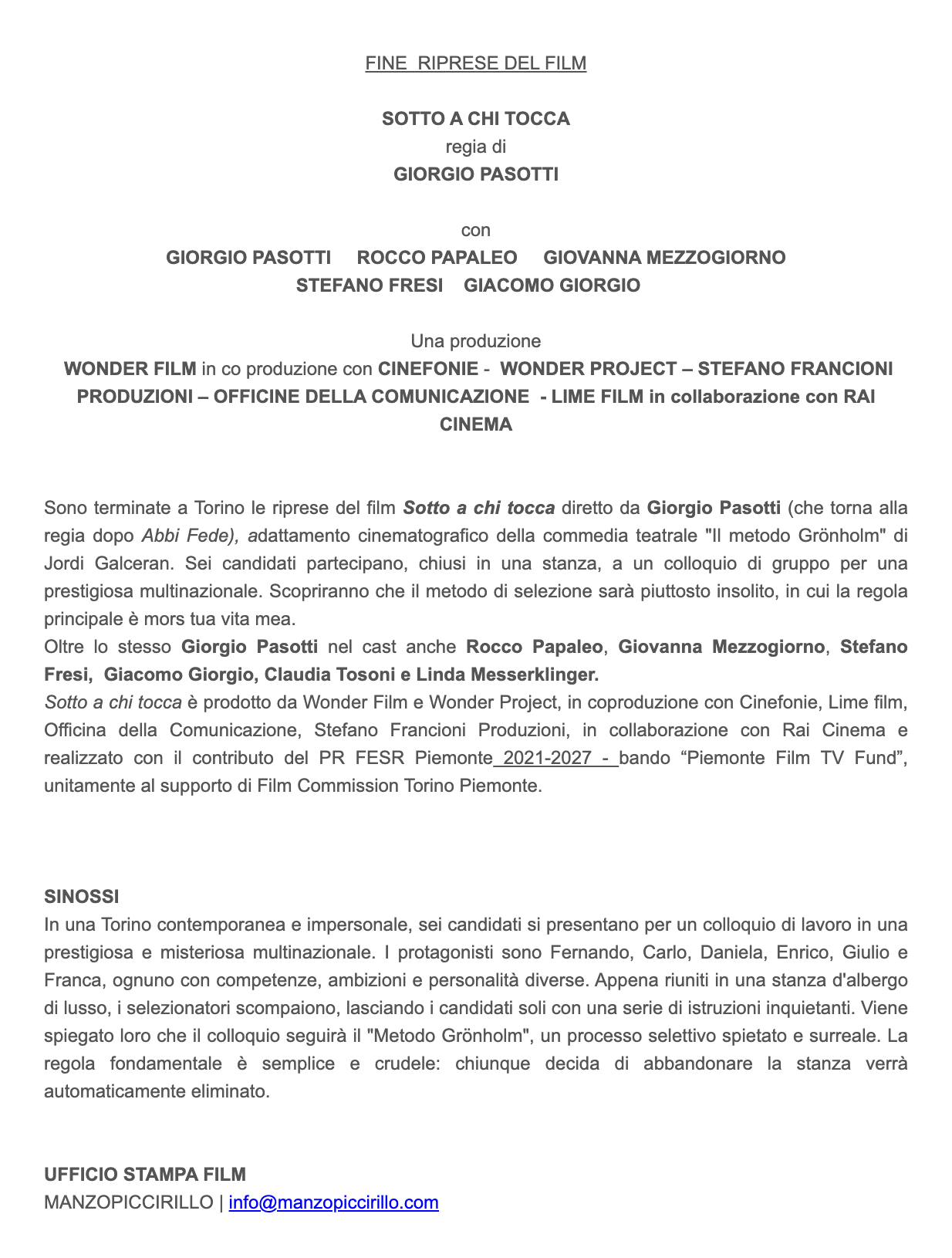 Fine riprese del film Sotto a chi tocca